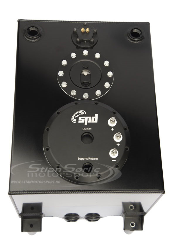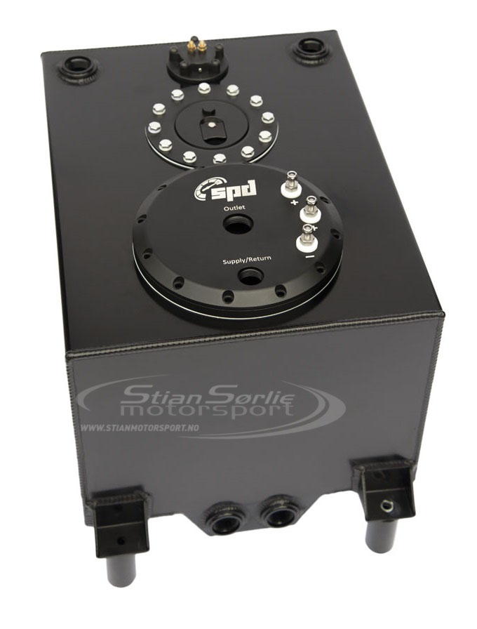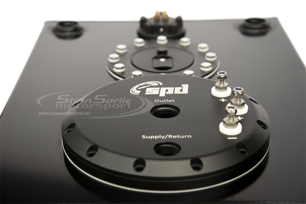 Bensintanken støtter også både interne pumper og eksterne. I denne utformingen er drivstoffpumpe-armaturen inkludert for å installere interne drivstoffpumper. Den tar alle runde pumper på markedet og er helt justerbar i høyden. Det er mulig å bruke opptil 3stk 60mm drivstoffpumper. Drivstofftanken har to utganger for eksterne pumper som er plugget i denne designen.