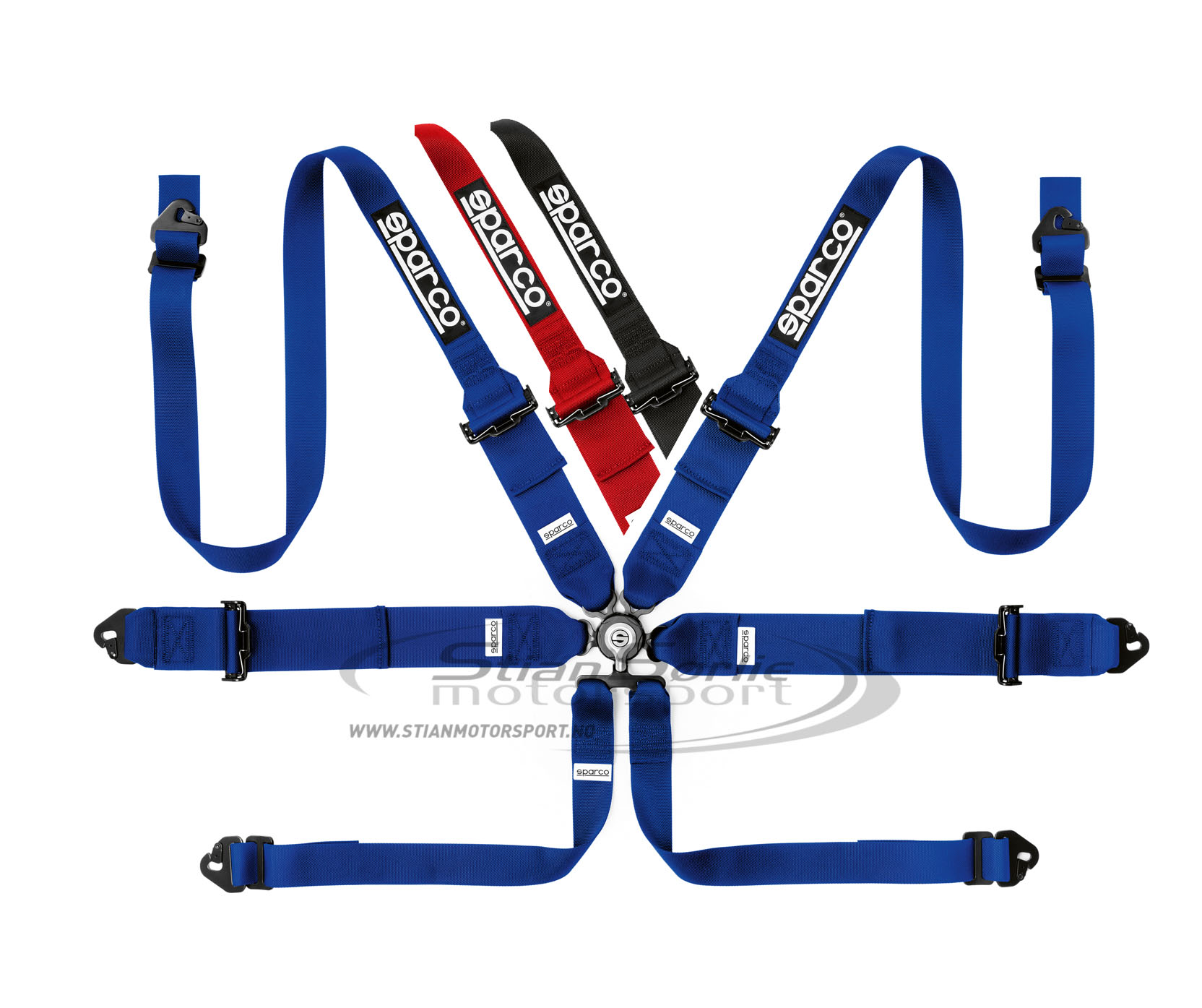 SPARCO sine belter er utviklet med sikkerhet i tankene. Høy-kvalitetsstoff, utstyrt med holdbare fester, hvert belte sikrer kroppen for økt trygghet og beskyttelse. SPARCO 6-Punkt belte gir deg 3″ mage- og 2″ skulderbelter, som klipses på midten med en «aircraft quick release» spenne, som er festet på lårstroppene. Belte utviklet til bruk med HANS enhet. Stålstrammere.