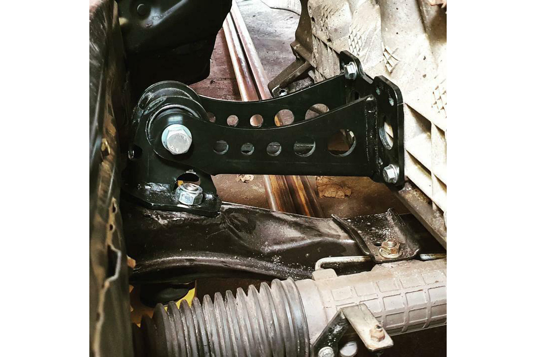 Girkassen vil også få 10° helning. Enten bytter man til en tilsvarende girkasse fra en dieselmodell, eller så må man bygge om girkassefeste og oppheng/arm til girspaken.