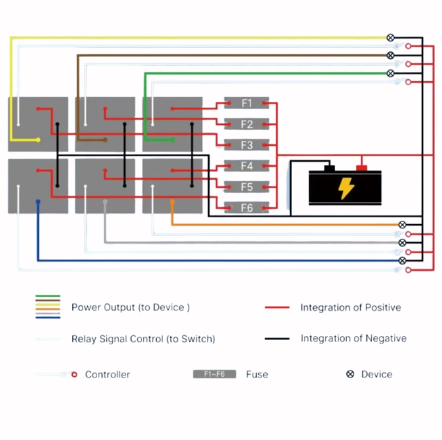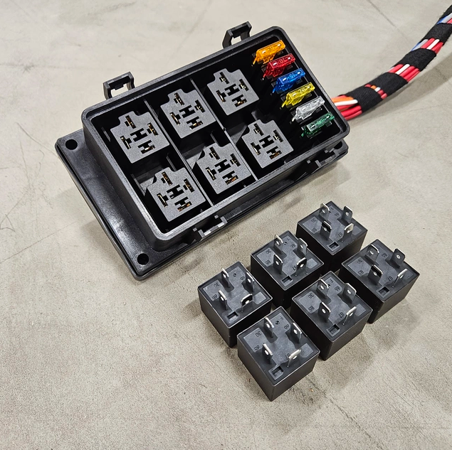 RB6-W er en universal relé- og sikringssentral som kan kobles til ECU eller bryter for å enkelt styre applikasjoner som:
