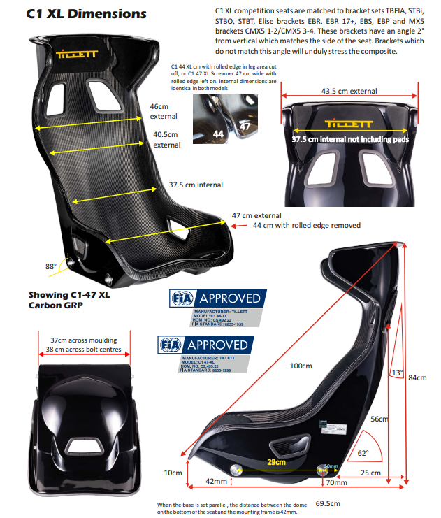 C1 kan brukes komfortabelt uten polstring, noe som betyr at du kan oppnå lavere kjøreposisjon enn de fleste andre seter på markedet. Setet er ekstremt stivt som hindrer at selen og Hans-enheten kommer løs under en ulykke.